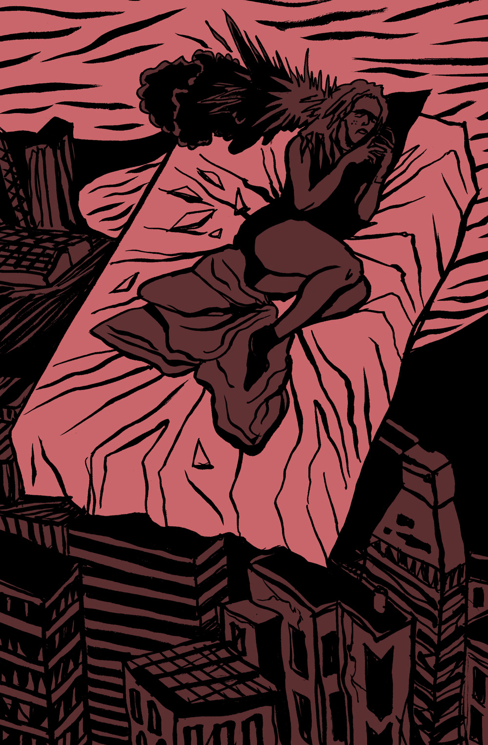 Drawing for slate.fr on witnessing the news of the Beirut explosion from abroad.