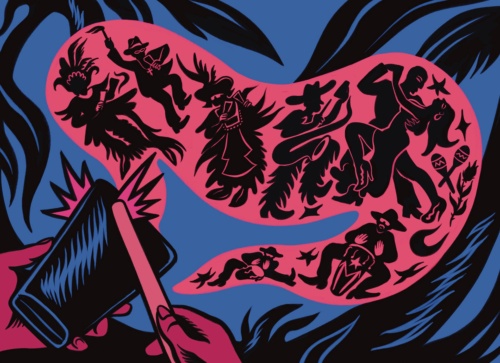 Illustration for the article “The Rebellious Instrument That Gave Latin Music Its Swing” in the New York Times Magazine. AD: Rachel Willey. Full article here
