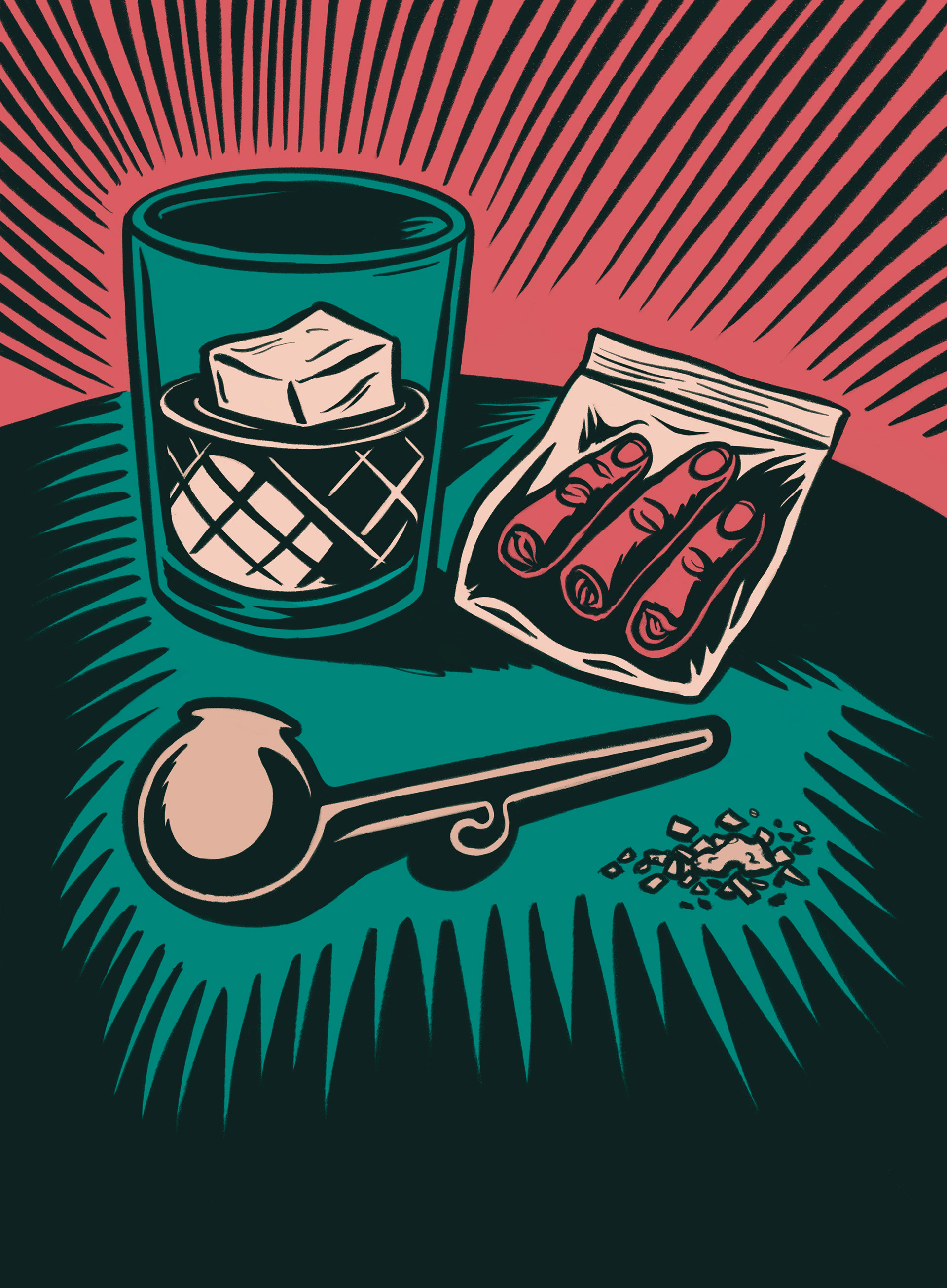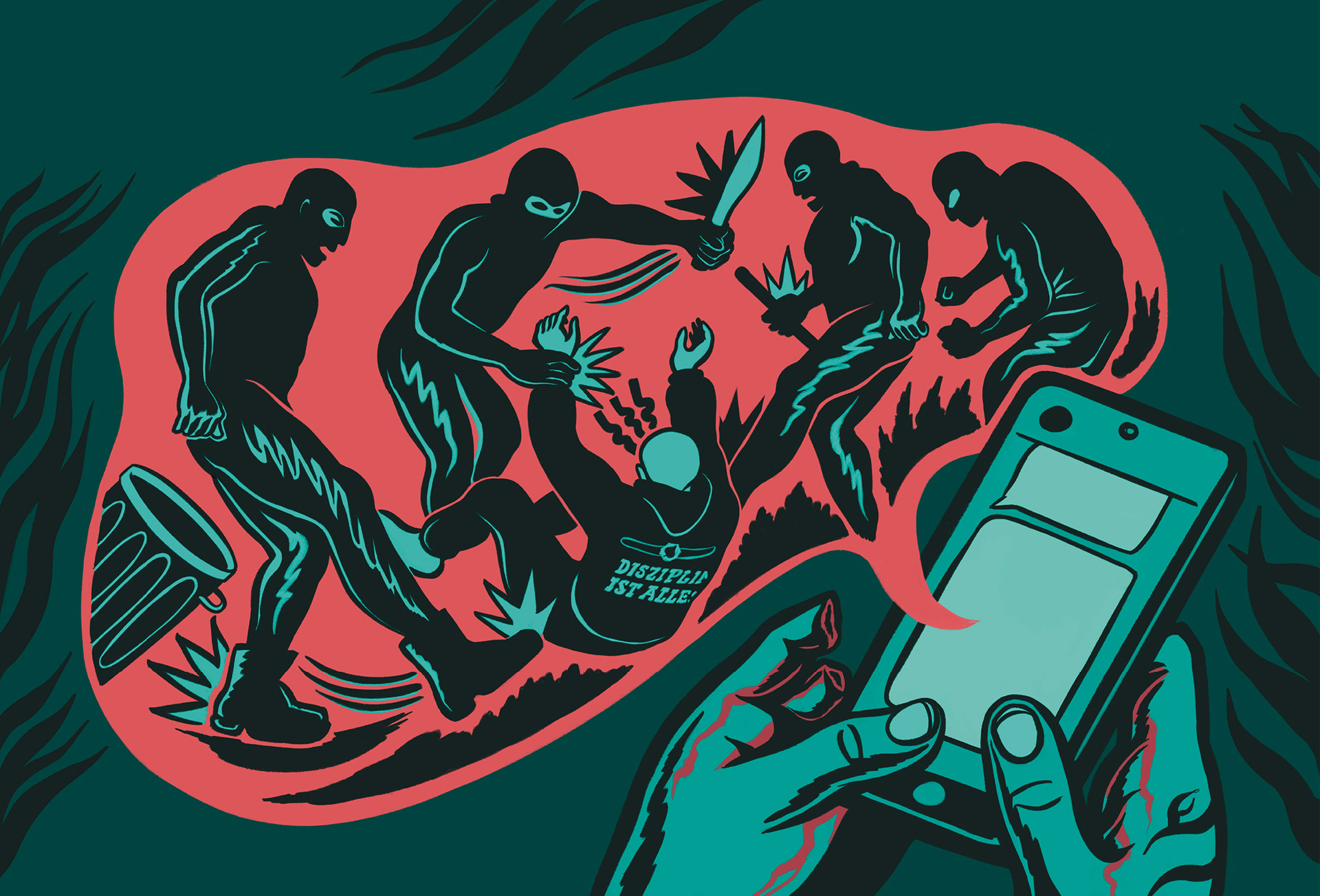Double page illustrations for Zeit Magazin, for a reportage about a former neonazi who staged a violent machete attack by left-wing radicals to facilitate his exit from that scene. Full article here.